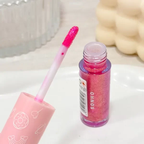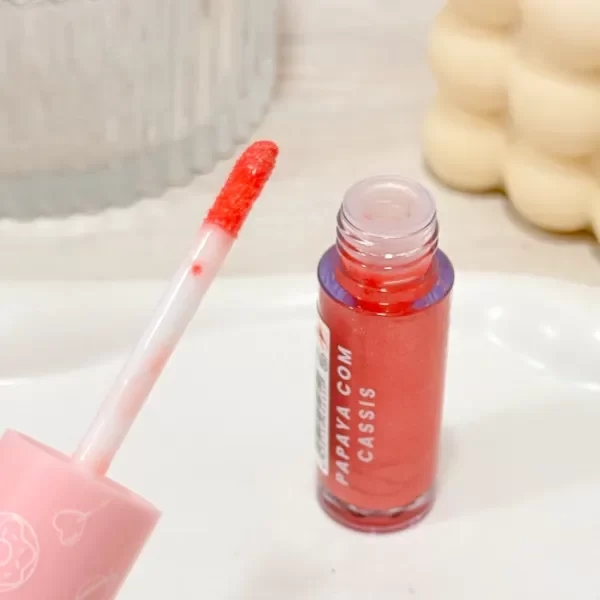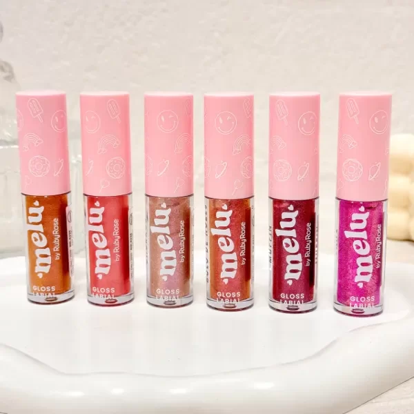 El brillo labial Ruby Rose Melu Brilhante tiene un efecto húmedo que aporta a los labios un brillo intenso con partículas de purpurina.